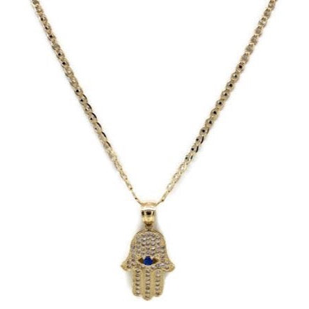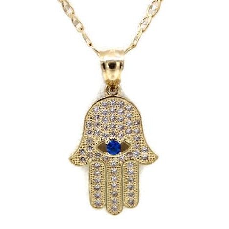 14K Gold Evil Eye Hamsa Hand 14K Real Solid Gold Hamsa Hand with Blue Evil Eye Stone Pendant Measures approximately 1 1/8" Pendant weights 3.8 grams You can purchase only pendant or...