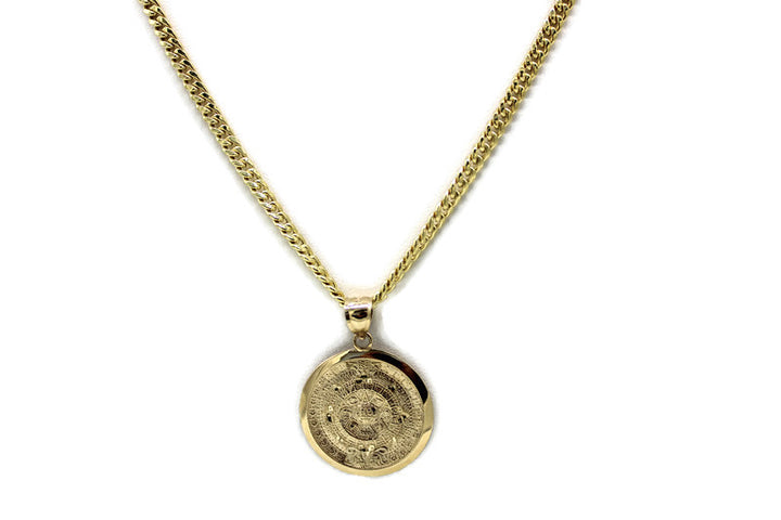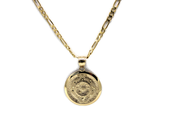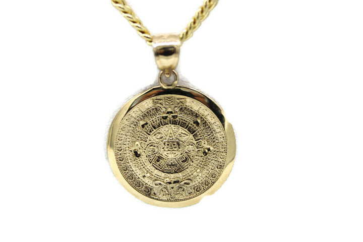 14K Gold Aztec Calendar Pendant with Necklace - Real Solid Gold