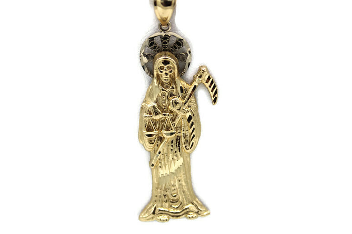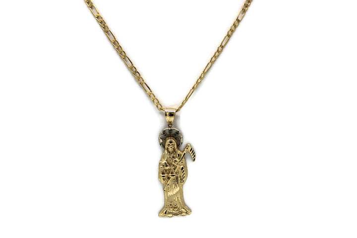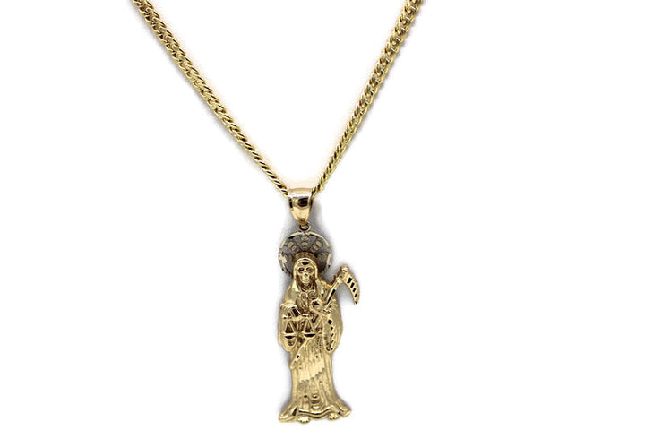 14K Gold Santa Muerte Pendant with Necklace - Real Solid Gold