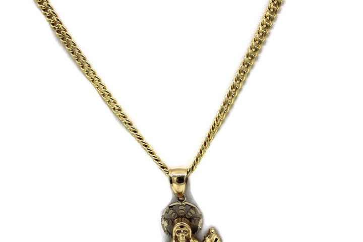 14K Gold Santa Muerte Pendant with Necklace