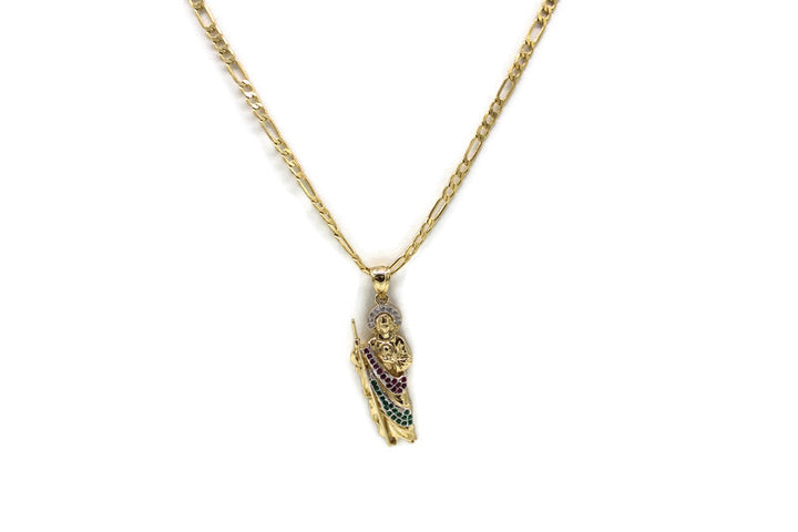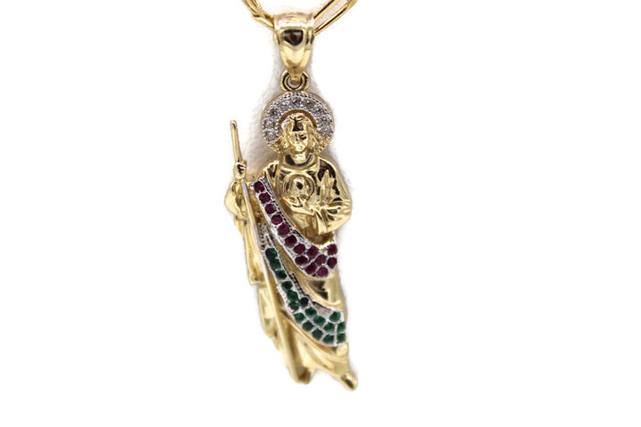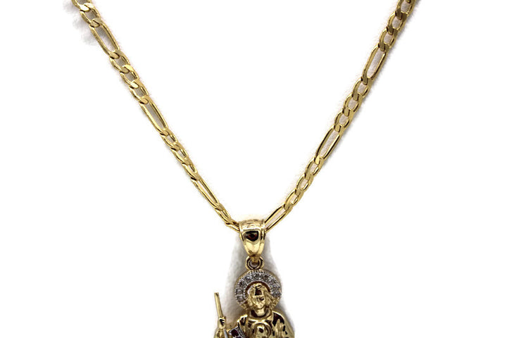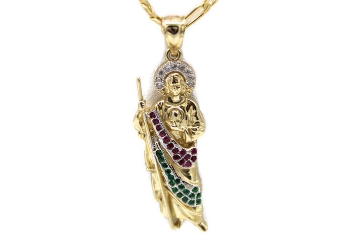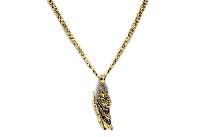 14K Gold St Jude Pendant with Necklace - Real Solid Gold