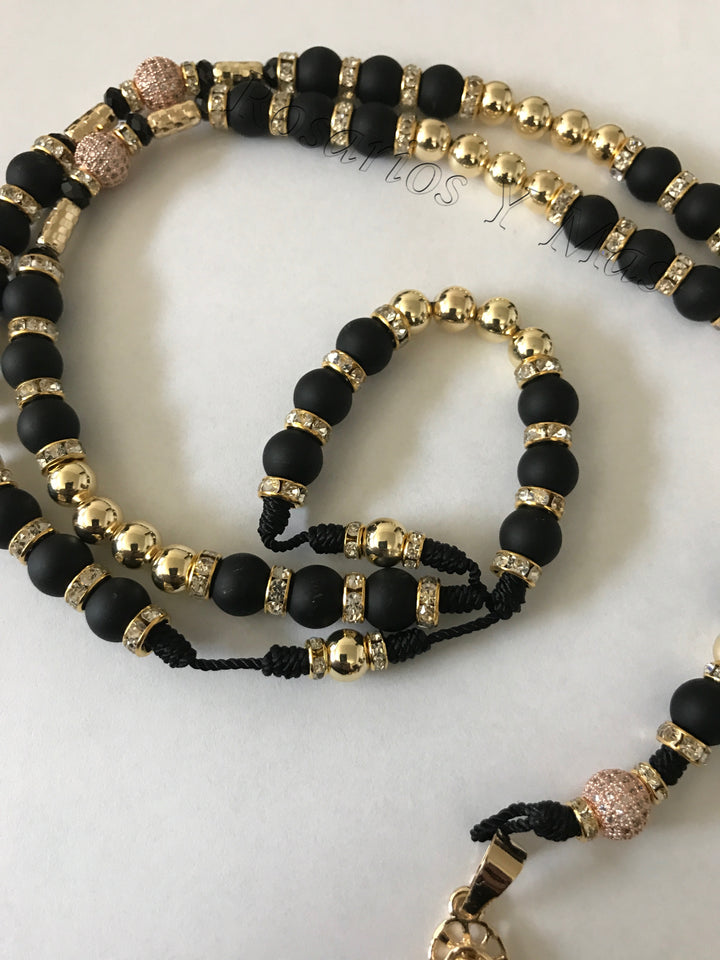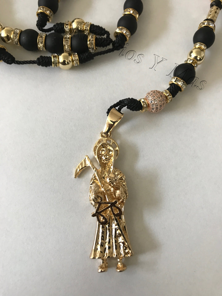 14K Santa Muerte Gold Filled Rosary Necklace - Rosario de Santa Muerte de 14K Oro Laminado