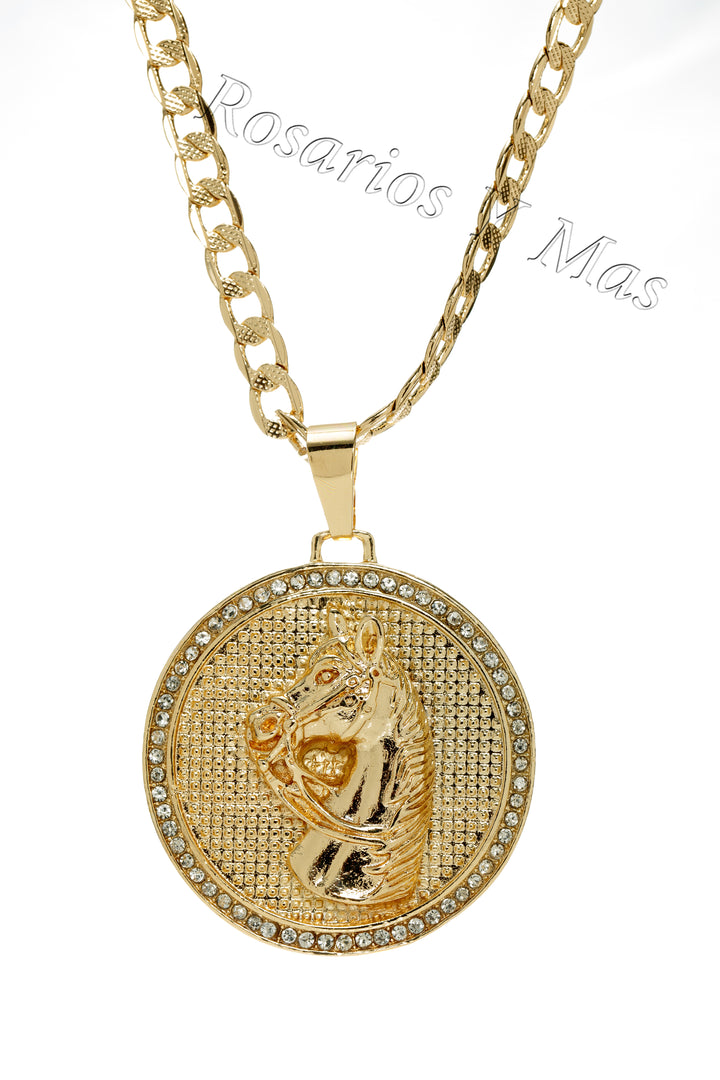 24K Gold Filled Horse Pendant with Necklace - Medalla de Caballo Oro Laminado con Cadena