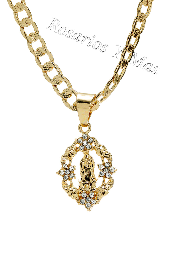 24K Gold Filled Our Lady of Guadalupe Pendant with Necklace - Virgen De Guadalupe Oro Laminado Medalla Y Cadena