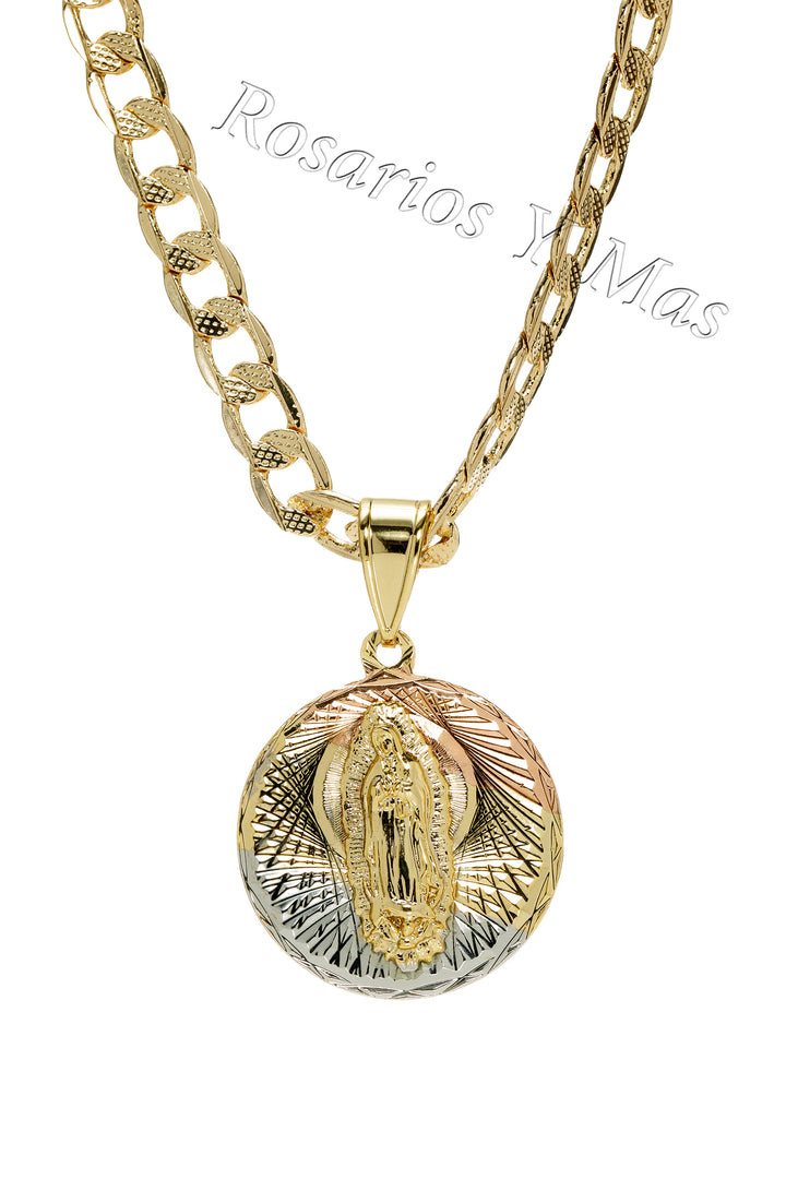 24K Gold Filled Our Lady of Guadalupe Three Tone Pendant with 24" Necklace