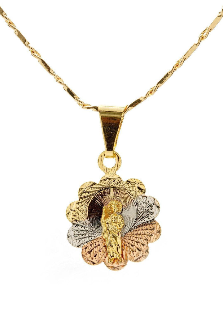 24K Gold Filled St Jude Three Tone Pendant with 24" Necklace