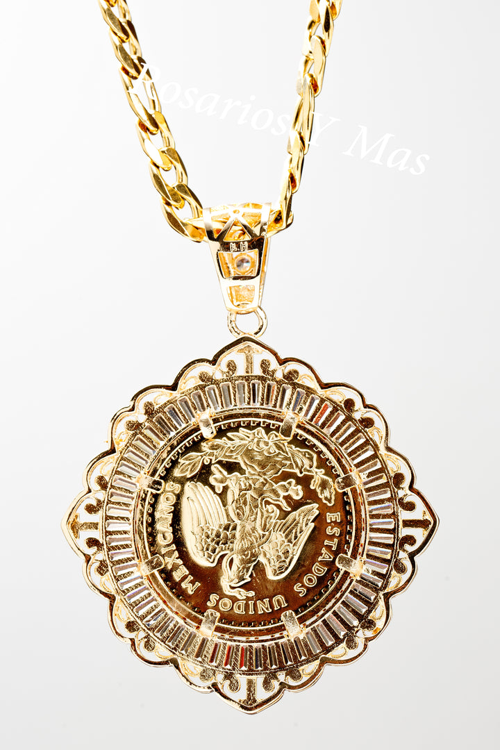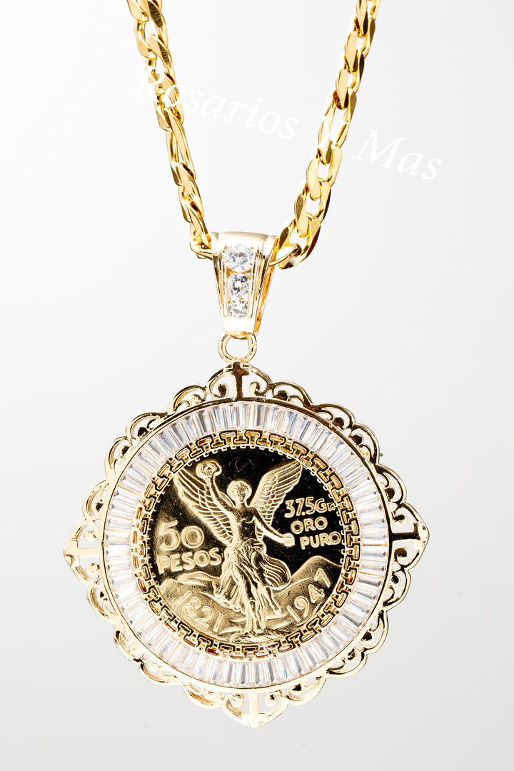 Centenario de 50 Pesos y Aguila Mexicana con cadena de 26"