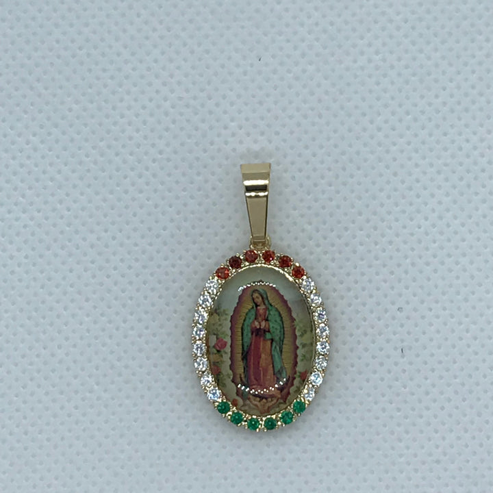 24K Oro Laminado Virgen De Guadalupe Virgen De Guadalupe Tiene Piedras de colores Verde, Blanco y Rojo Solo Medalla/Dije Es de 24K Oro Laminado Medalla Mide 1 1/2" Great 24K Gold Filled Our Lady...