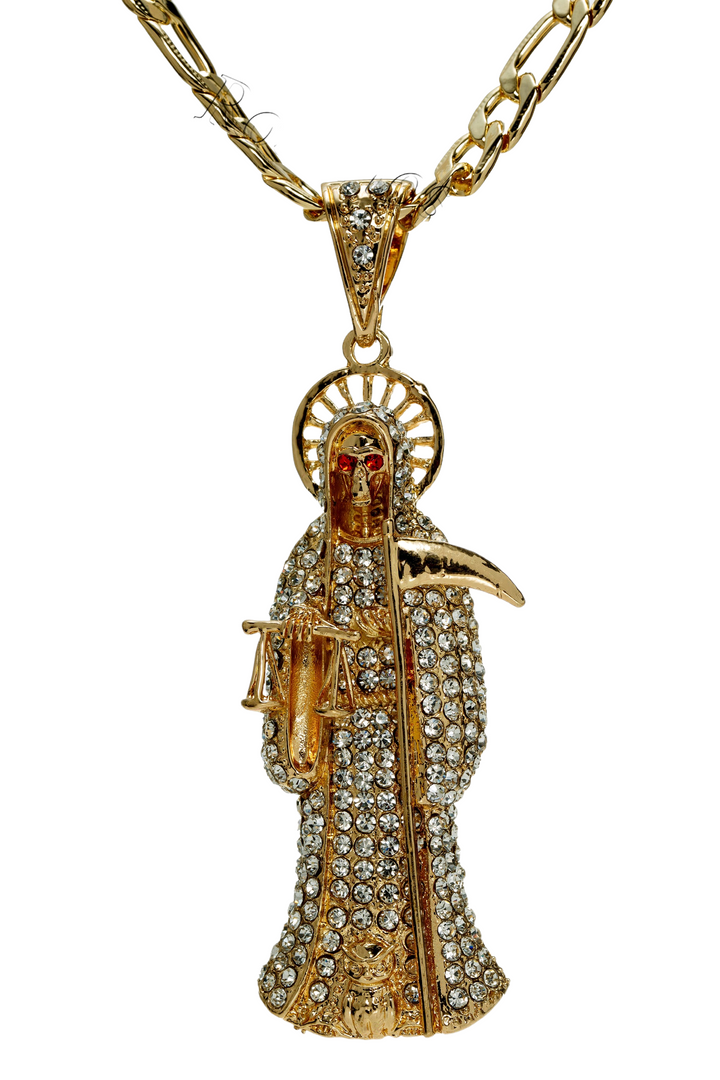 White Santa Muerte Pendant with Necklace (24K Gold Filled)
