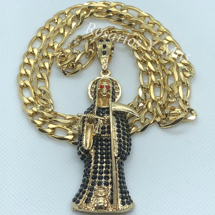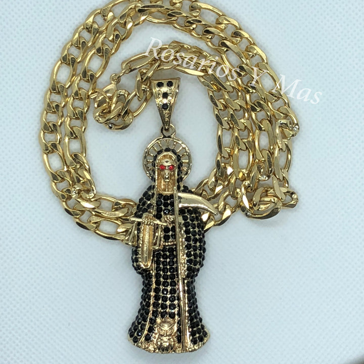 24K Gold Plated Santa Muerte with 26" Necklace - Santa Muerte con Cadena de 26"