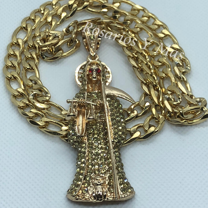 24K Gold Plated Santa Muerte with 26" Necklace - Santa Muerte con Cadena de 26"