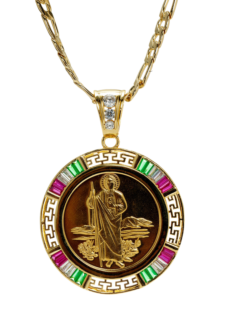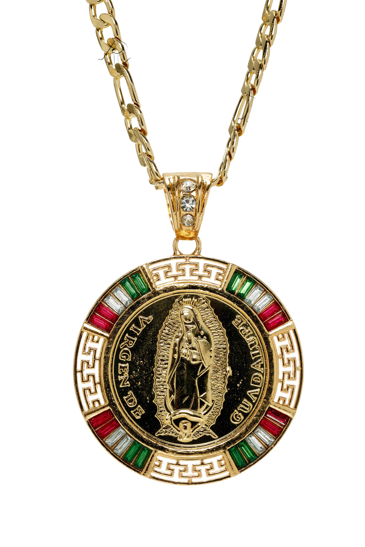 St Jude and Our Lady of Guadalupe Centenario with 26" Necklace (24K Gold Plated)