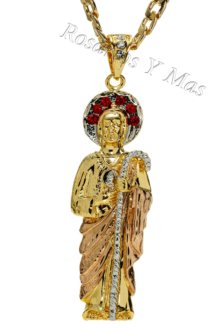 24K Gold Plated St Jude Pendant with 26" Necklace - San Judas con Cadena de 26" Oro Laminado