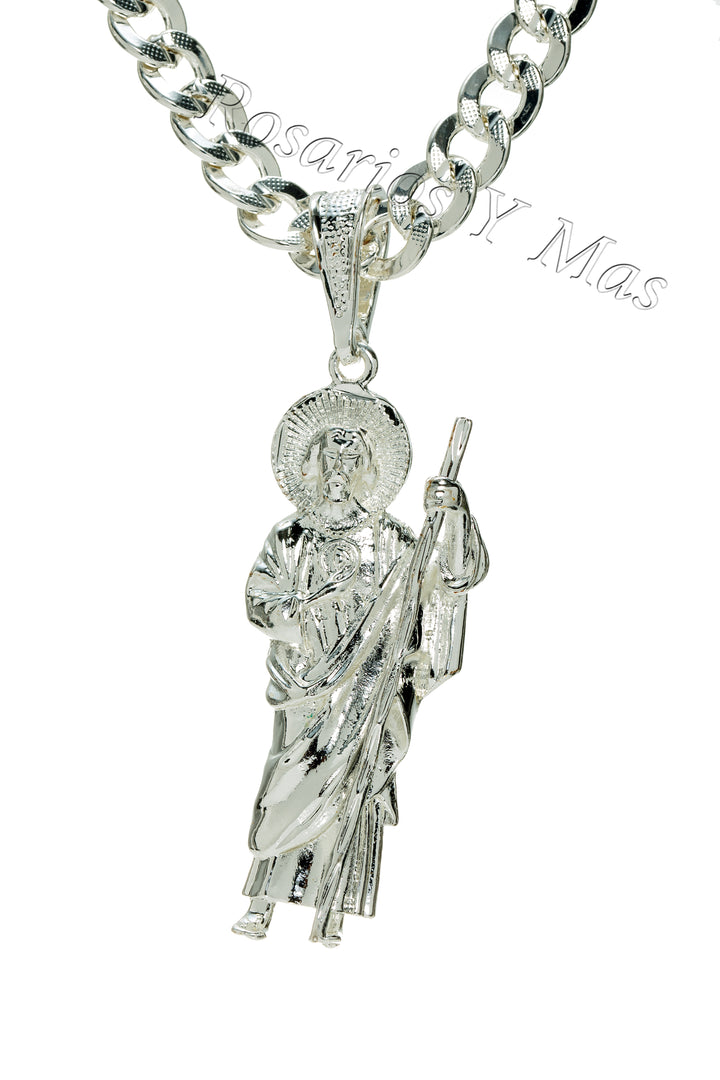 24K White Gold Filled St Jude Pendant with 26" Necklace - San Judas Oro Laminado Blanco con Cadena