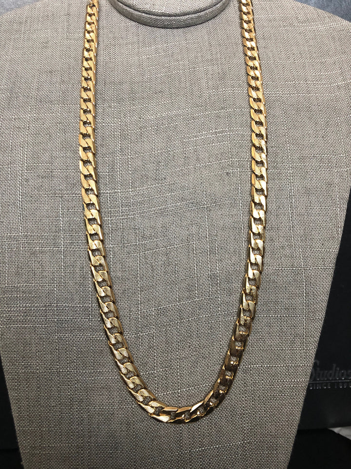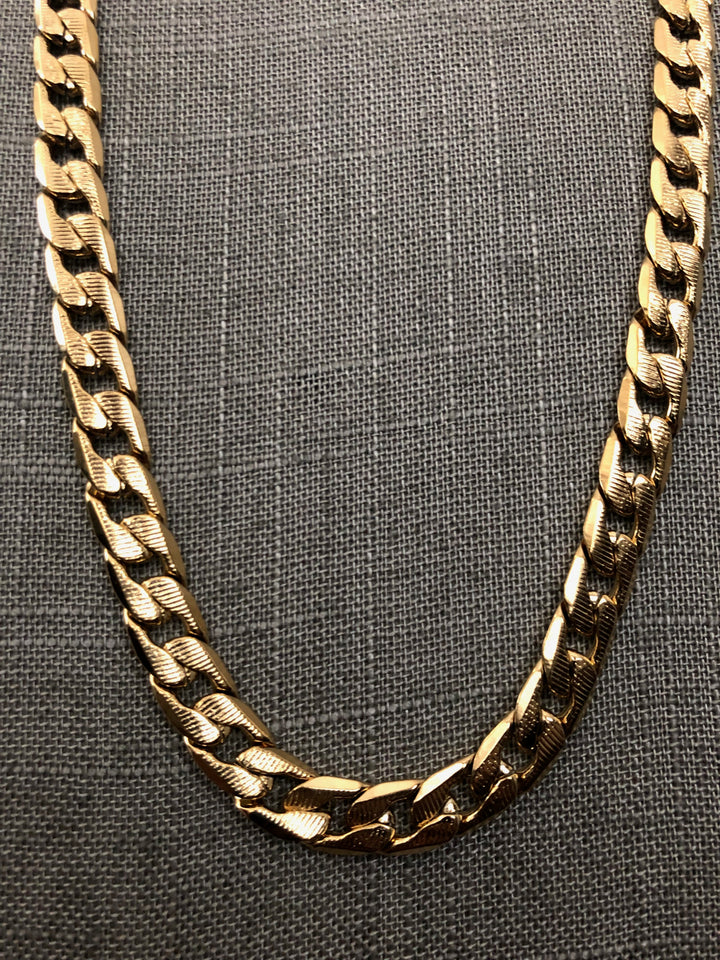 28" Thick Cuban Necklace Necklace is 24K Gold Filled over Stainless Steel 28" Long 9 mm Width Great Quality Cadena Cubana de 28" Cadena es de 24K Oro Laminado sobre Acero...