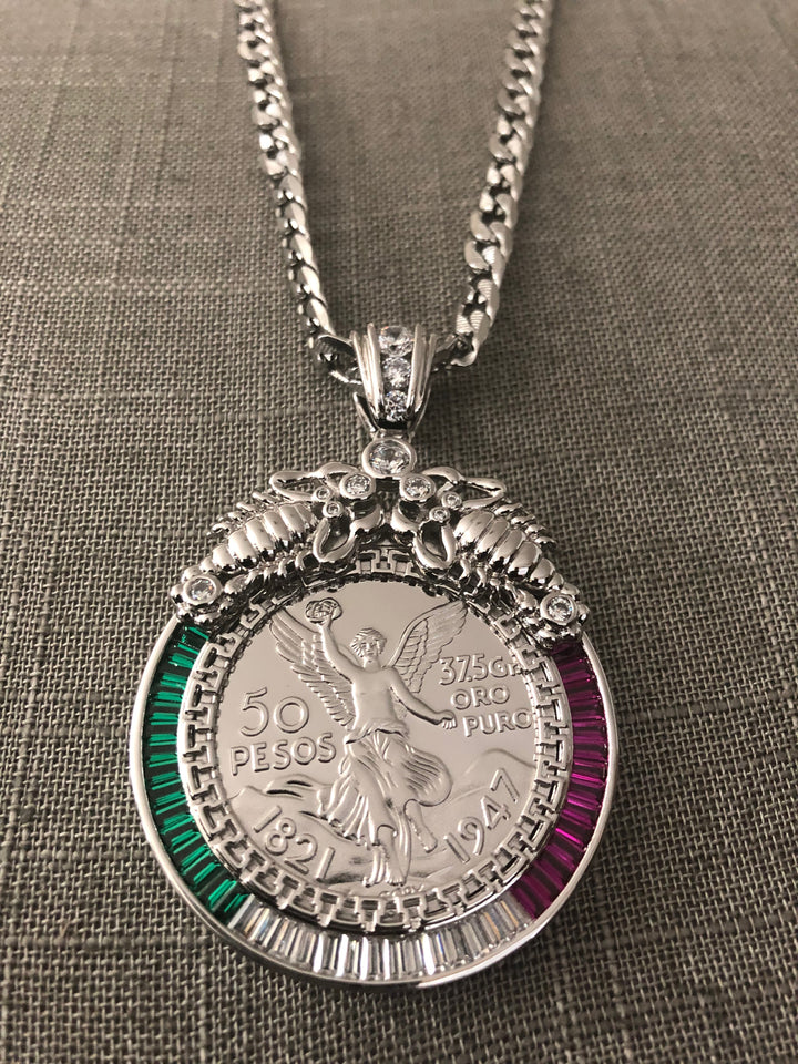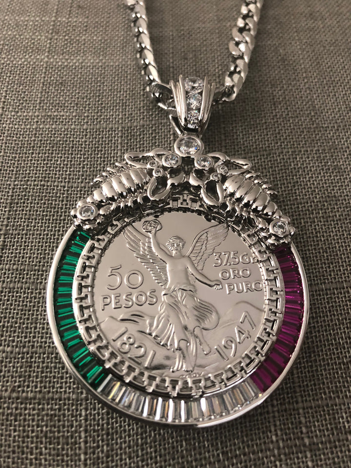 50 Pesos and Mexican Eagle Centenario with 26" Necklace (24K White Gold Plated)