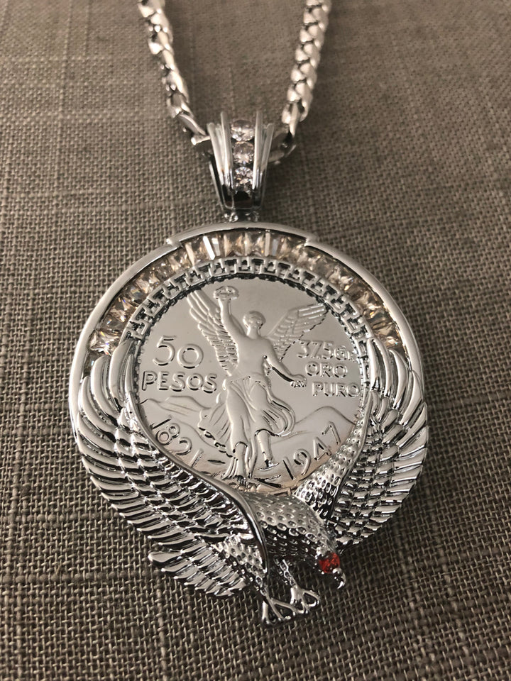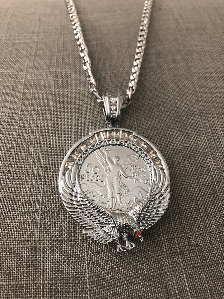 50 Pesos and Mexican Eagle Centenario with 26" Necklace (24K White Gold Plated)