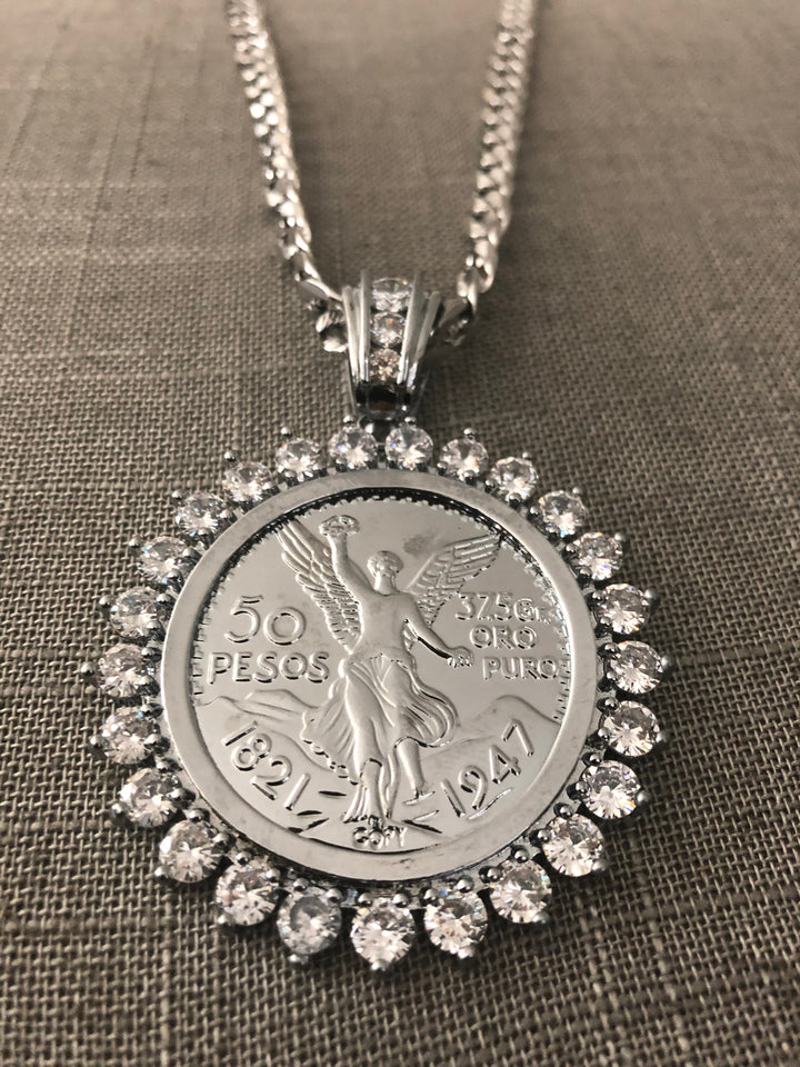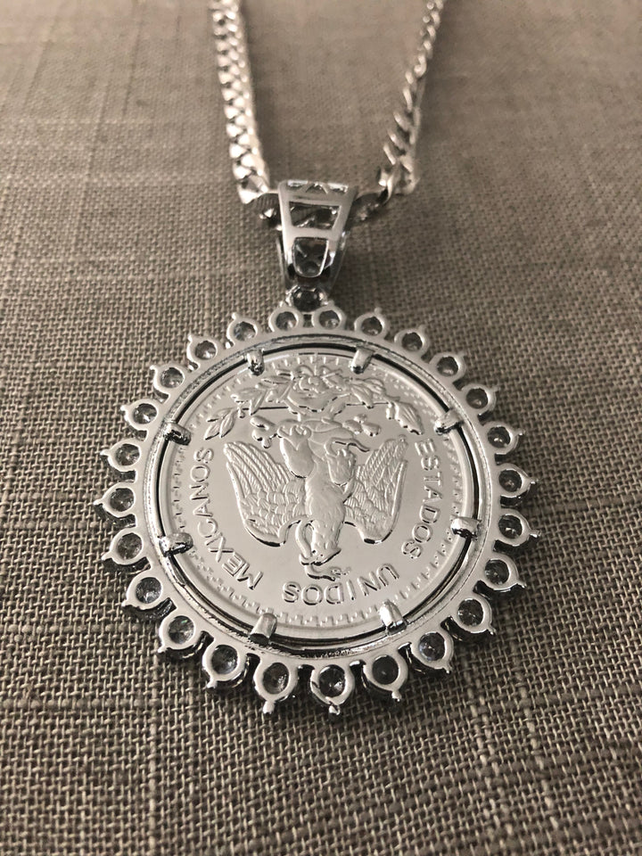 50 Pesos and Mexican Eagle Centenario with 26" Necklace (24K White Gold Plated)