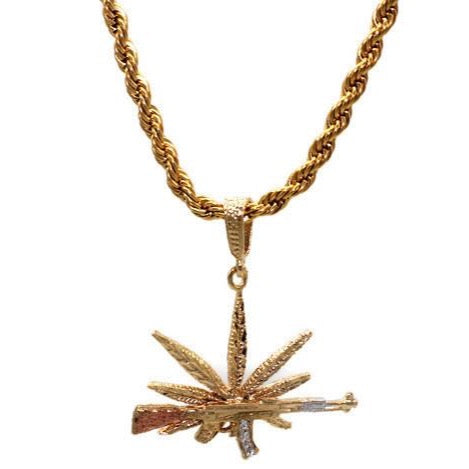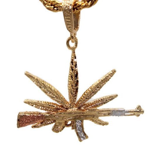 AK47 Riffle Marijuana Necklace (24K Gold Filled)