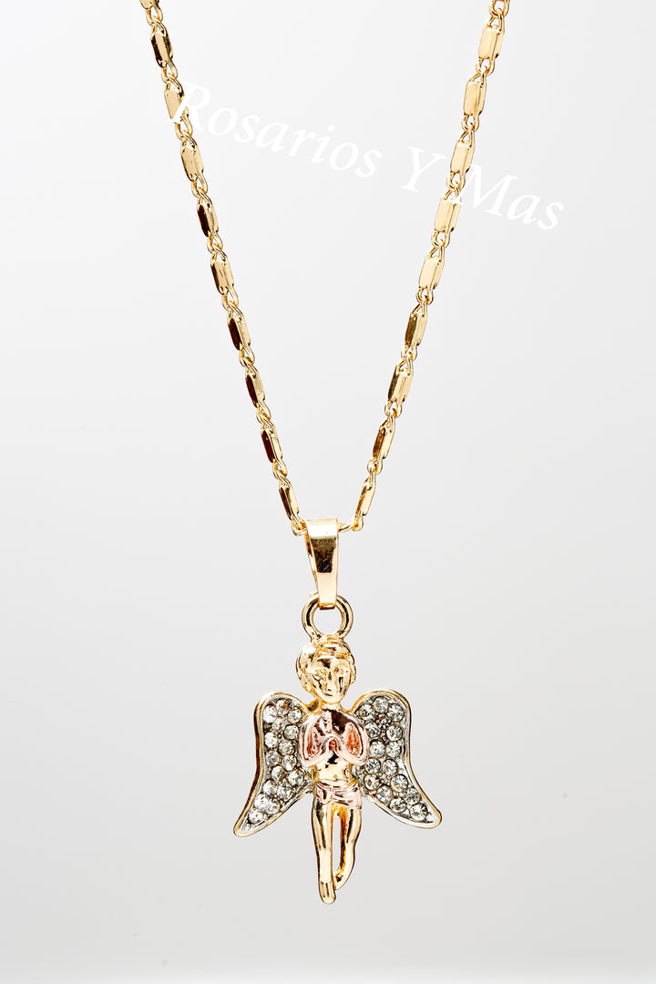 Angel con Alas con cadena de 24" Medalla de Angel con Alas con Piedras Blancas Incluye cadena de 24" de Oro Laminado Es de 24K Oro Laminado Medalla Mide 1 1/4" Cadena Mide 24" Beautiful...