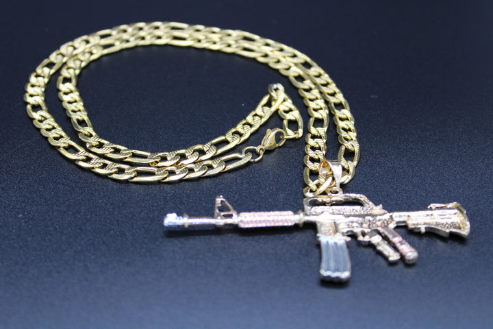 Assault Riffle with 26"Necklace (24K Gold Plated)