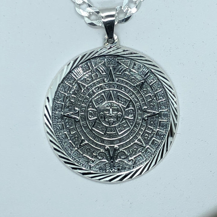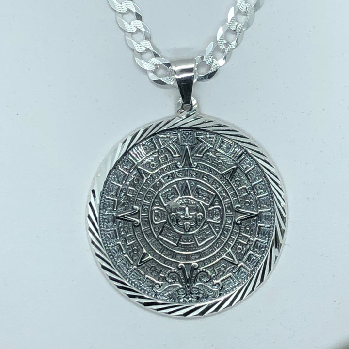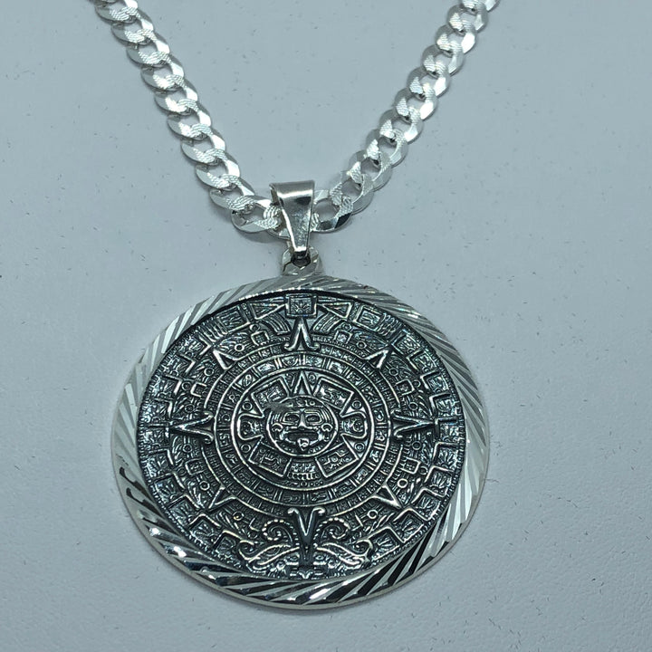 Aztec Calendar with 24" Cuban Necklace (.925 PURE SILVER)