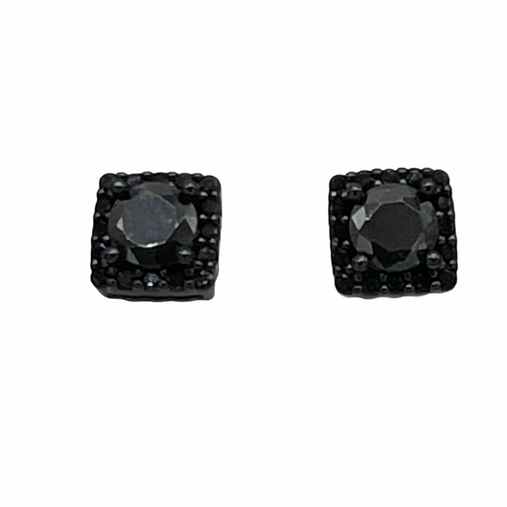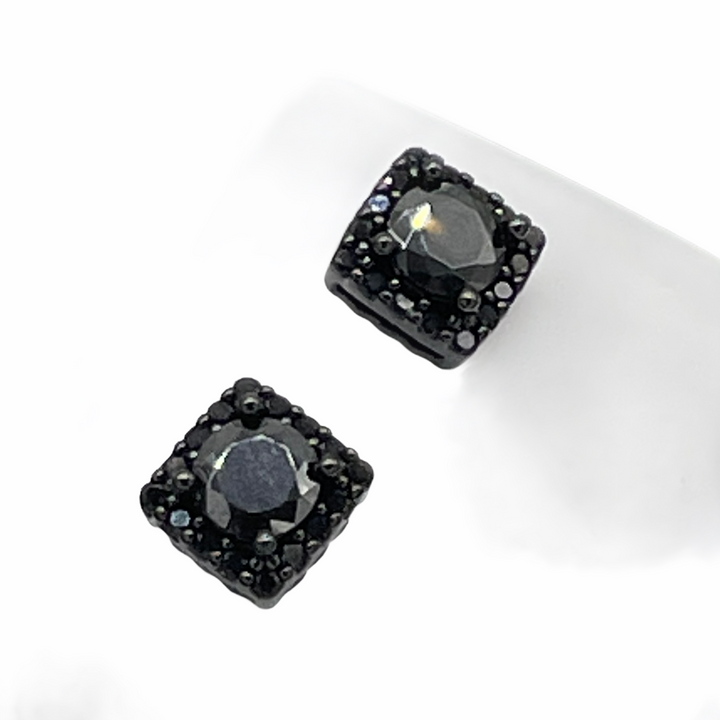 Stud Earrings Clarity Crystals Square Shape Black Tone Stainless Steel Push Backing 8mm High-Quality Handmade Aretes Cristales Claritos Estilo Cuadro Tono Negro Acero Inoxidable 8mm Alta Calidad Hechos a Mano