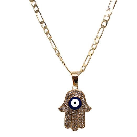 Blue Evil Eye Hamsa Hand Necklace (24K Gold Filled)