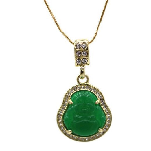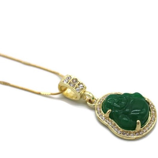 Buddha with Necklace Buddha Pendant - Green Stone Includes a 22" Necklace that is Gold Filled Pendant is 24K Gold Filled Pendant Measures 1 1/2" Necklace Measures 22" - 1mm Medalla de Buda con Cadena...