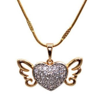 Wings Heart with Necklace Wings Heart Pendant - Heart has White Stones Includes a 21" Necklace that is 24K Gold Filled Pendant is also 24K Gold Filled Pendant Measures 1" Necklace Measures 21"...