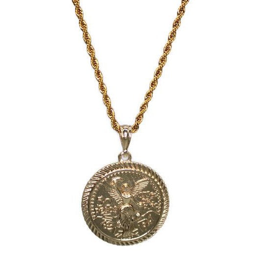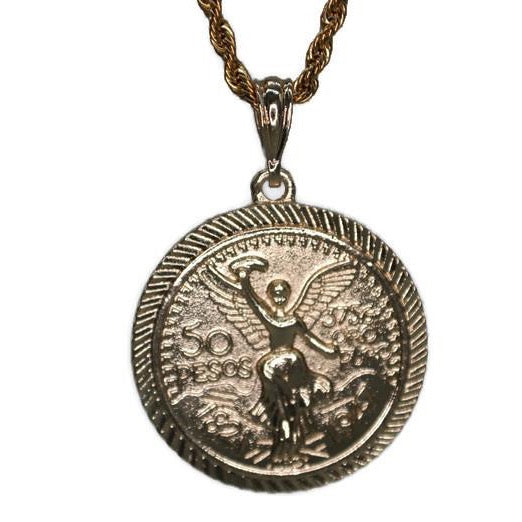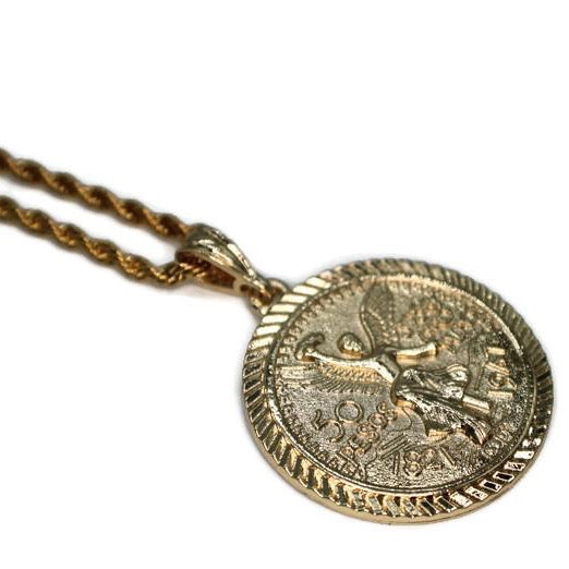 Centenario Centenario Pendant - 50 Pesos on one side & Mexican Eagle on other side Option to Purchase only Pendant or with 24" Necklace Pendant and Necklace are 24K Gold Filled Pendant Measures...