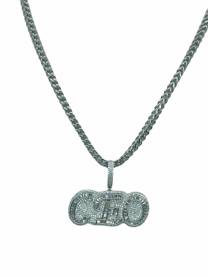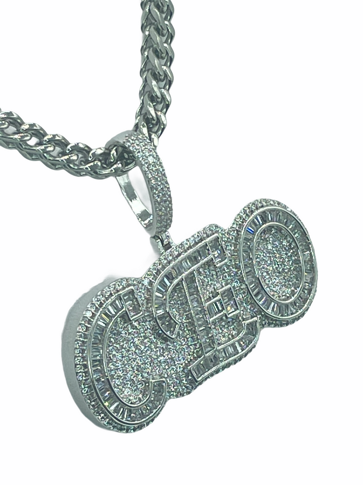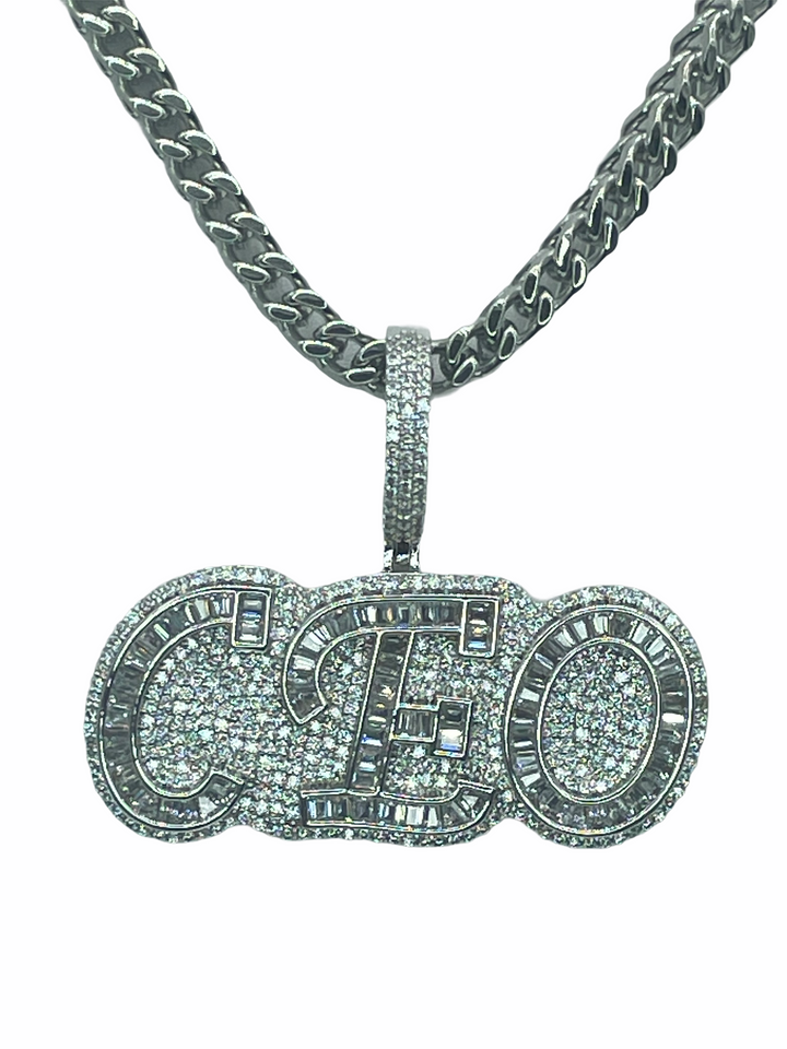 CEO CEO Pendant Micro Pave Stones Box Style Necklace 14K White Gold Finish Pendant Measures - 1 3/4" Necklace Measures - 26"
