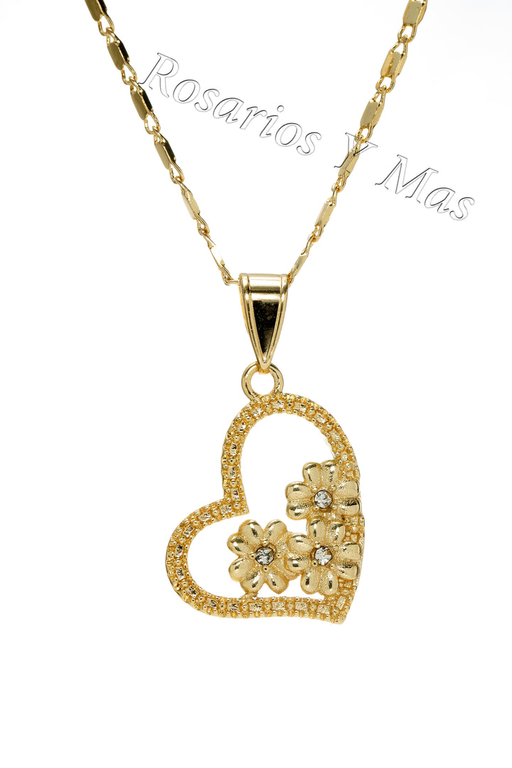 24K Gold Plated Heart with Flowers with 24" Necklace - Medalla de Corazon con Cadena de 24" Oro Laminado