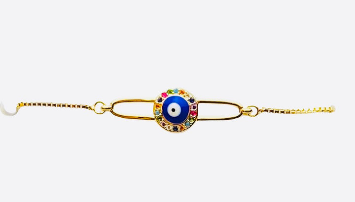 Evil Eye Bracelet w/ Colored Rhinestones Adjustable one size fits all Gold Filled Mal De Ojo Pulsera con Piedras de Color Se ajusta a medida Gold Filled *Please Read in...