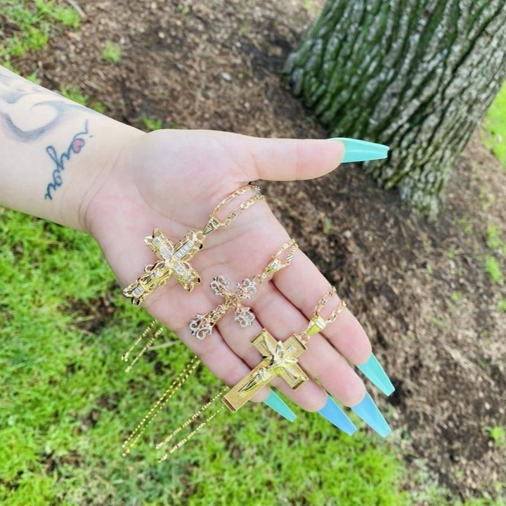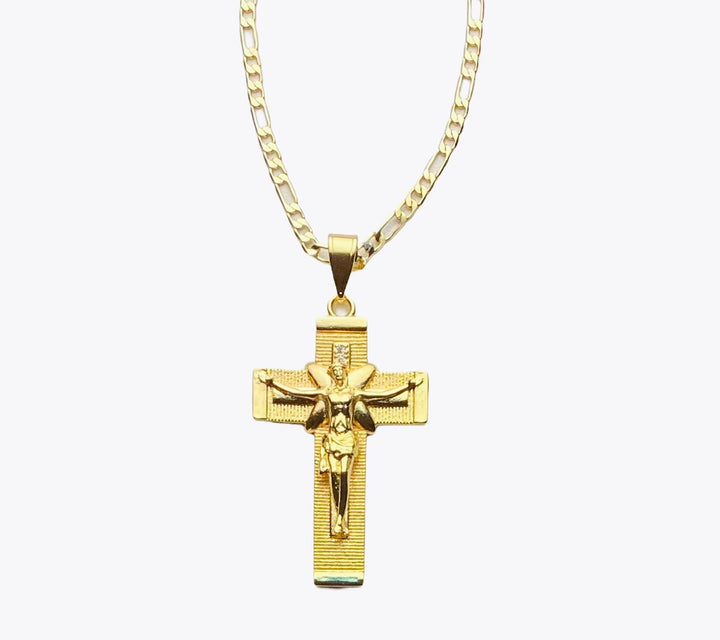 Crucifix Cross Necklace Crucifix Cross Pendant Includes a 24" Gold Filled over Stainless Steel Necklace 24K Gold Filled Pendant Measures 1 3/4" Necklace Measures 24" Cadena de Crucifijo Cruz Incluye cadena de 24"...