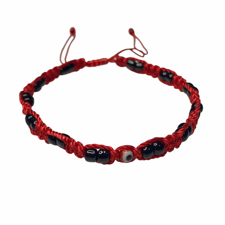 Evil Eye Knotted Rope Hand made adjustable one size fits all Red Color Knotted Rope Mal De Ojo Pulsera Hecho a Mano Se ajusta a medida Hecho con hilo nylon color...