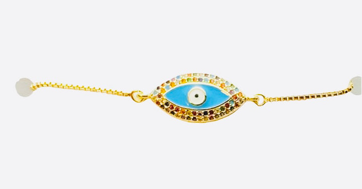 Evil Eye Bracelet w/ Rhinestones Adjustable one size fits all Gold Filled Mal De Ojo Pulsera Se ajusta a medida Gold Filled *Please Read in Detail* Rosarios Y Mas Inc....