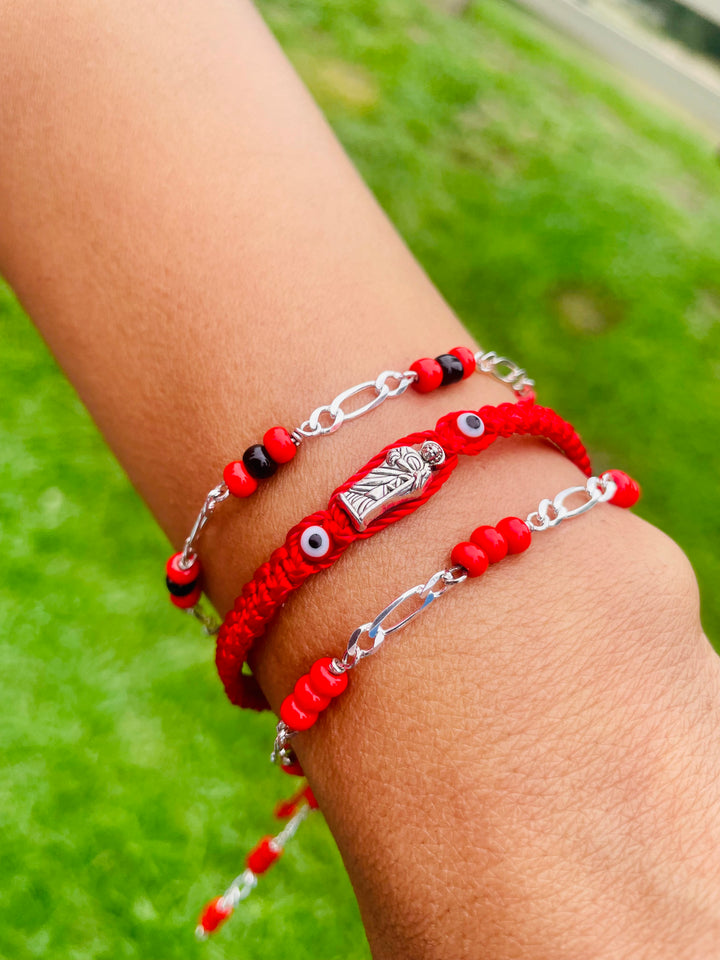 St Jude Protection Set 1) Protection Bracelet - Red Beads - 100% .925 Silver 1) Protection Bracelet - Red & Black Beads - 100% .925 Silver 1) St Jude Knotted Rope...