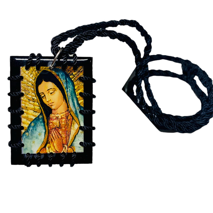 - Wood pendant with St Jude image on one side and Our Lady of Guadalupe on opposite side