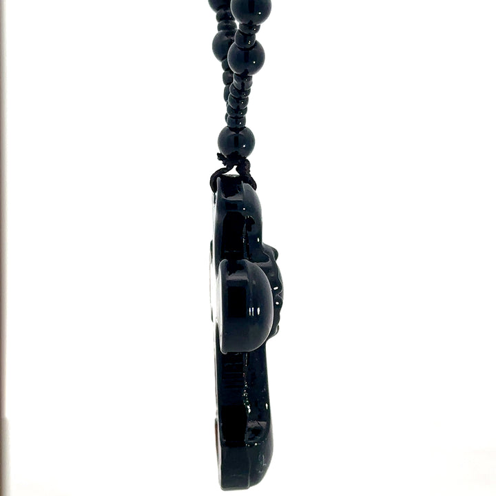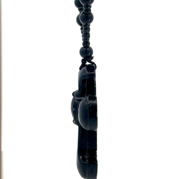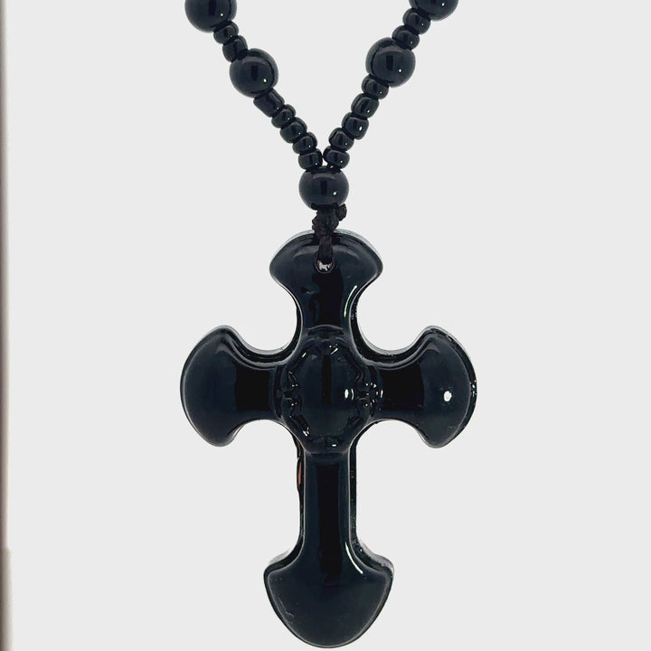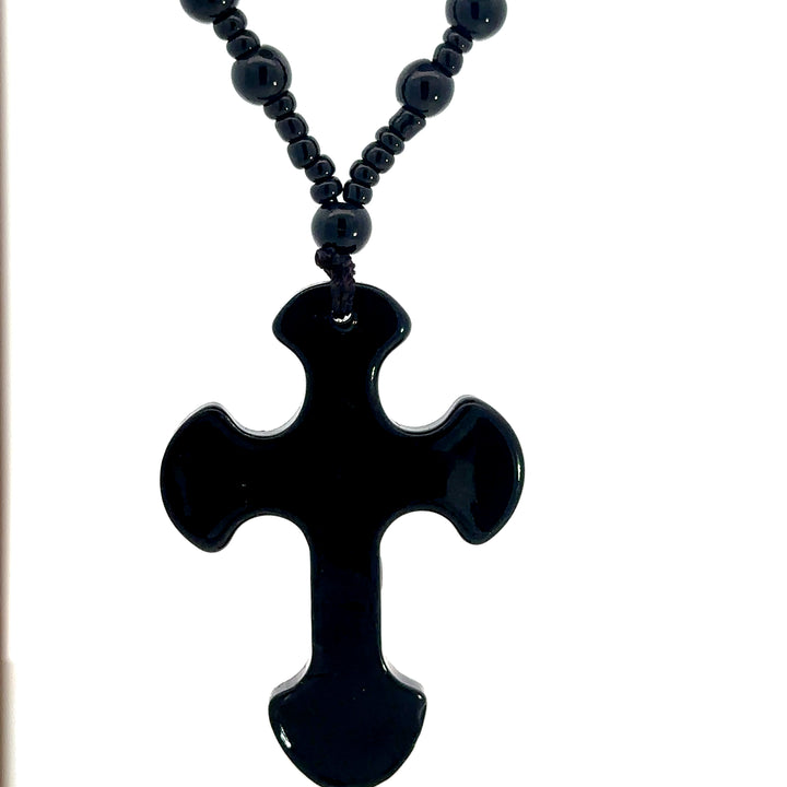 Jade Cross Necklace Jade Style Cross Pendant Necklace is made out of Black Jade color Beads Cruz estilo Jade con Cadena Cruz es color verde estilo Jade La Cadena tiene bolas...