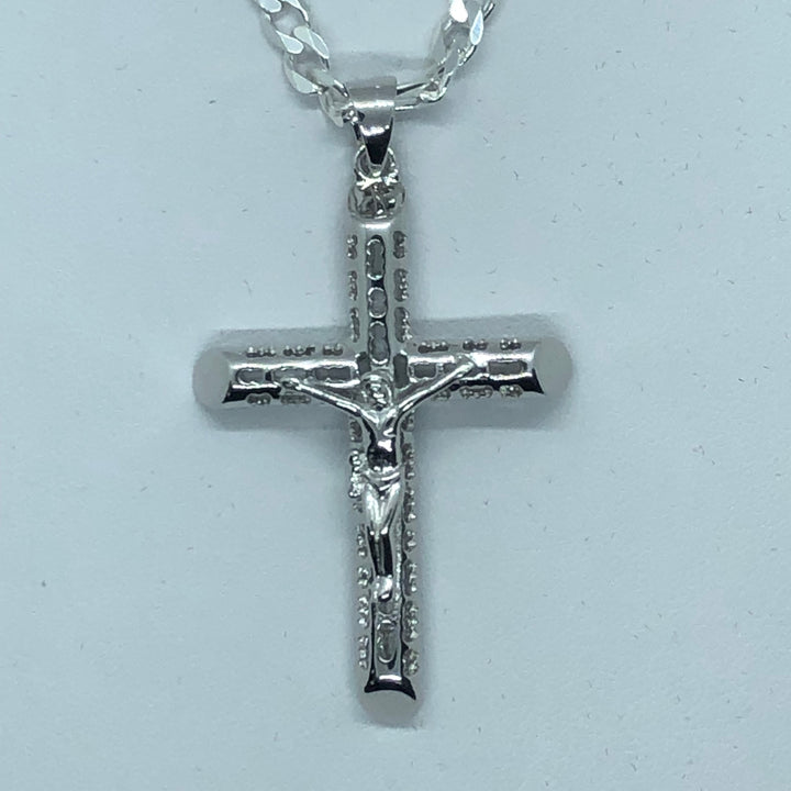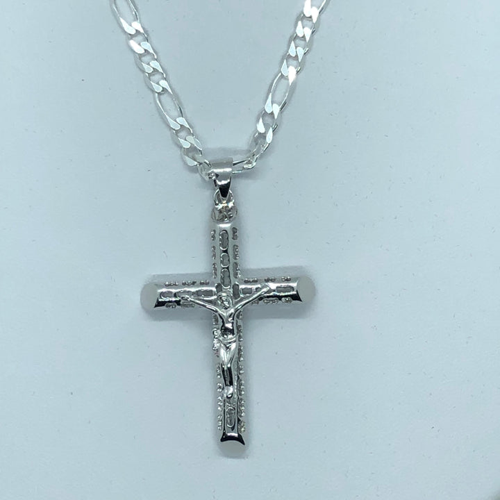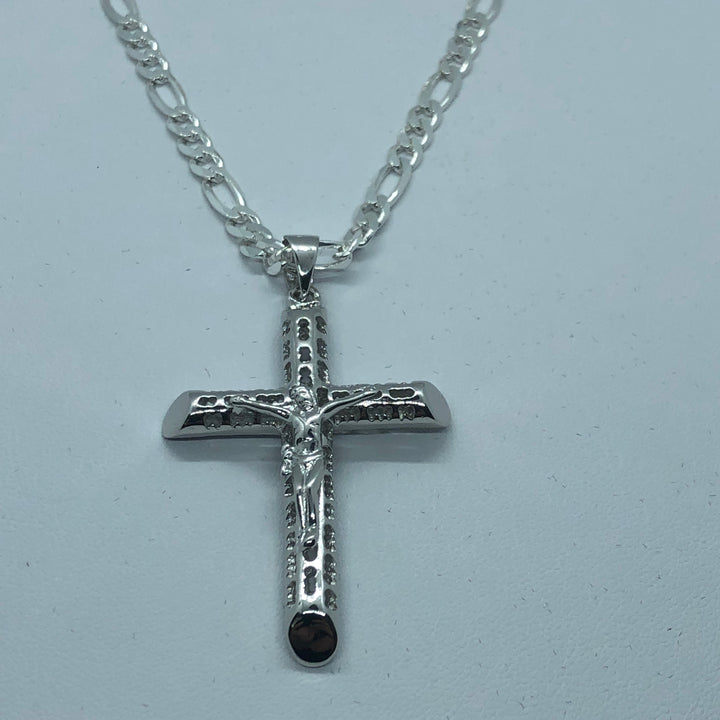 Cross with 24" Figaro Necklace (.925 PURE SILVER)