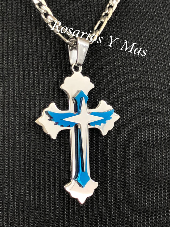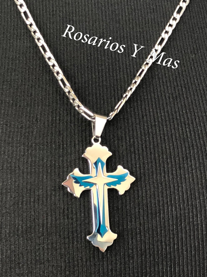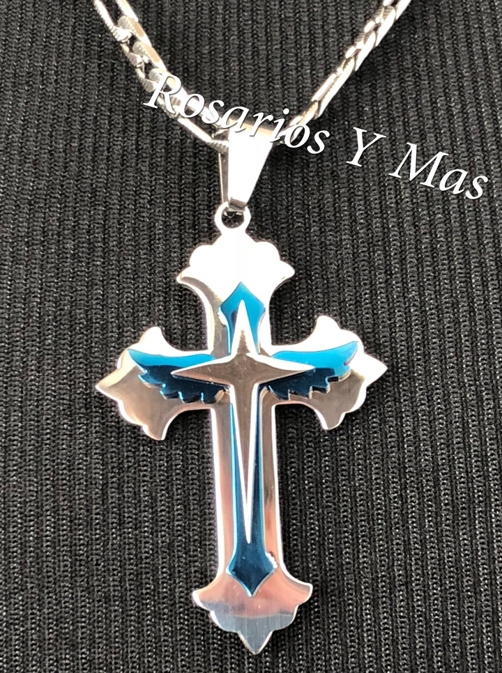 Cruz con cadena de 24" Incluye cadena de 24" de Oro Laminado Blanco sobre Acero Es de 24K Oro Laminado Blanco Cruz Mide 2 3/4" Cadena Mide 24" Beautiful Cross Pendant with 24" Necklace...