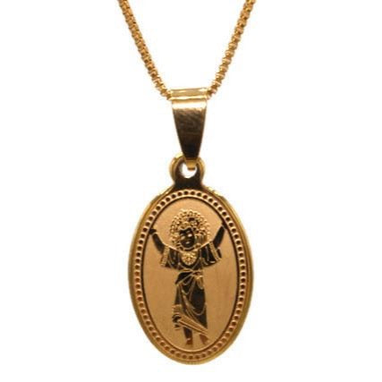 Divine Child with Necklace Divine Pendant - Image is Engraved Includes a 22" Necklace that is Gold Filled over Stainless Steel Pendant is 24K Gold Filled over Stainless Steel Pendant Measures 1 1/4" Necklace...