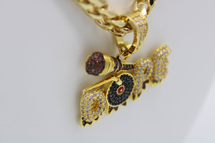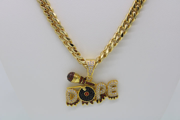 Dope Microphone Turntable Pendant with 28" Necklace (14K Gold Filled)