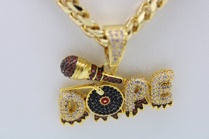Dope Microphone Turntable Iced Out Pendant with 28" Necklace