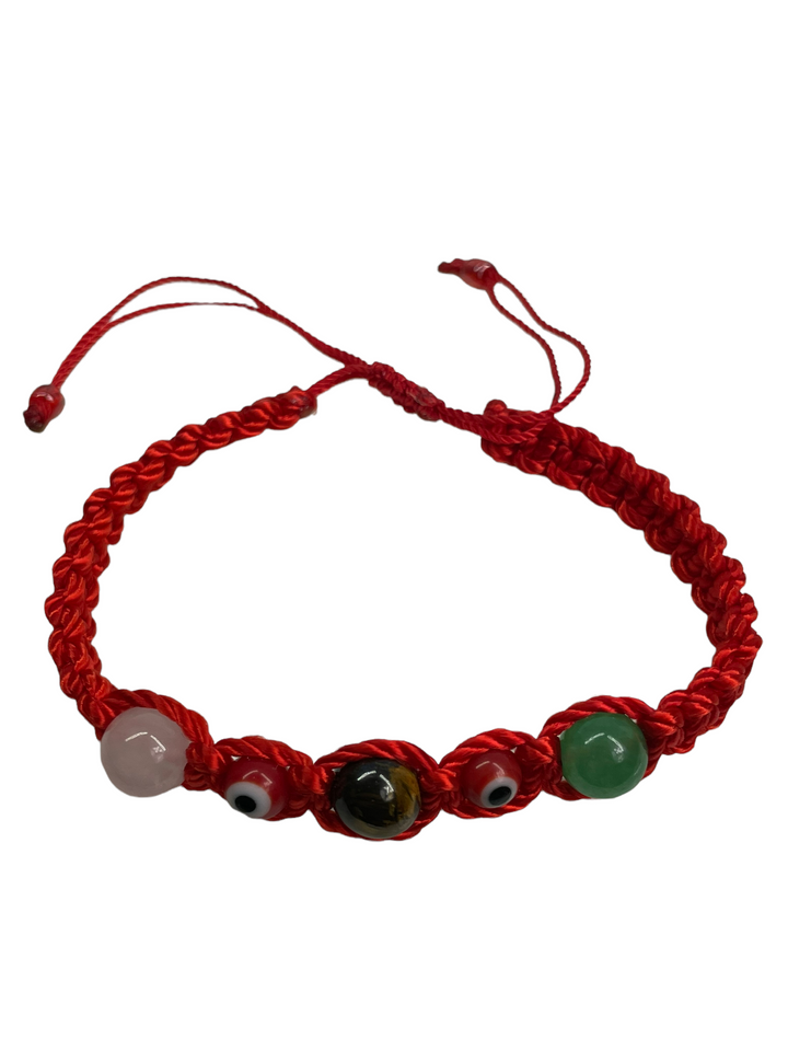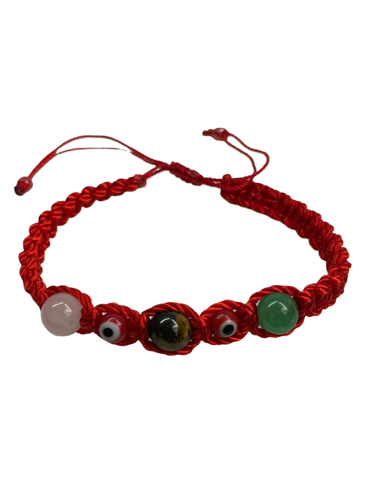 Evil Eye, Health, Love and Tiger Eye Knotted Rope Bracelet Hand made adjustable one size fits all Red Color Knotted Rope Pulsera de Mal de Ojo, Amor, Salud y Ojo de Tigre...