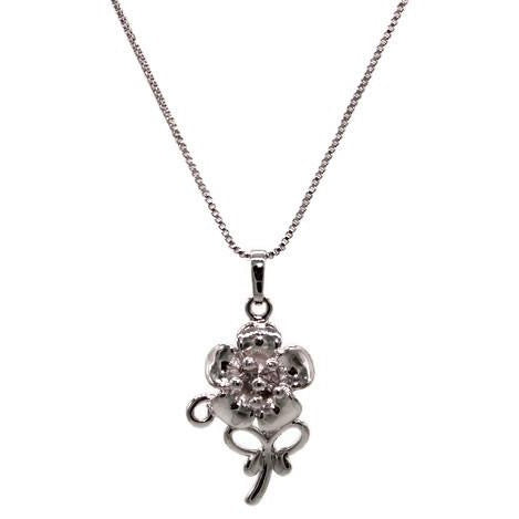 Flower with Necklace Flower Pendant Includes a 22" Necklace that is White Gold Filled over Stainless Steel Pendant is 24K White Gold Filled over Stainless Steel Pendant Measures 1 1/8" Necklace Measures...