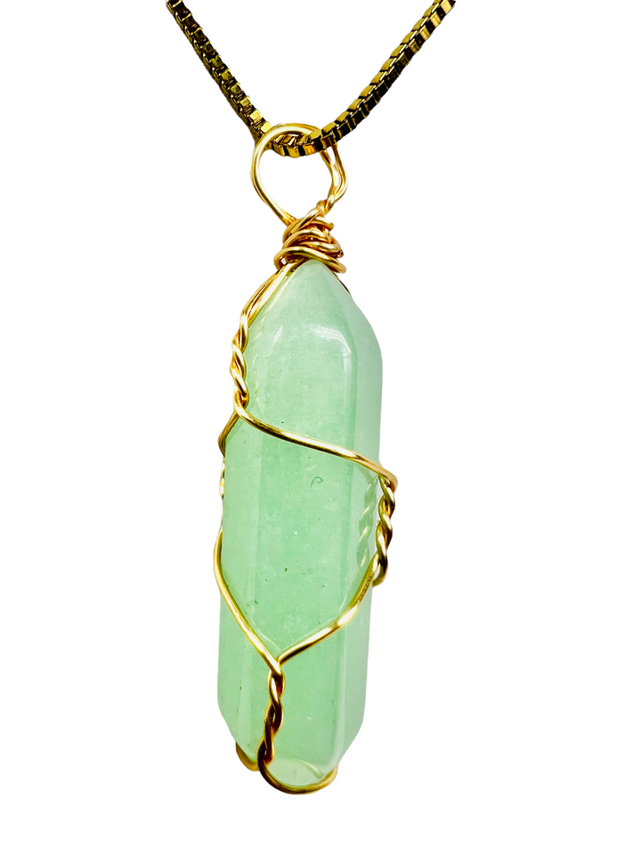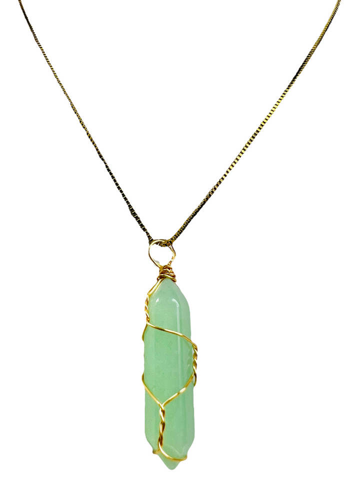 Green Crystal Stone Crystal Stone Pendant - Green Color Necklace is 24K Gold Filled over Stainless Steel Pendant Measures 40 mm Necklace Measures 24" - 3mm Cristal Cuarzo Verde Medalla de Cristal Cuarzo...