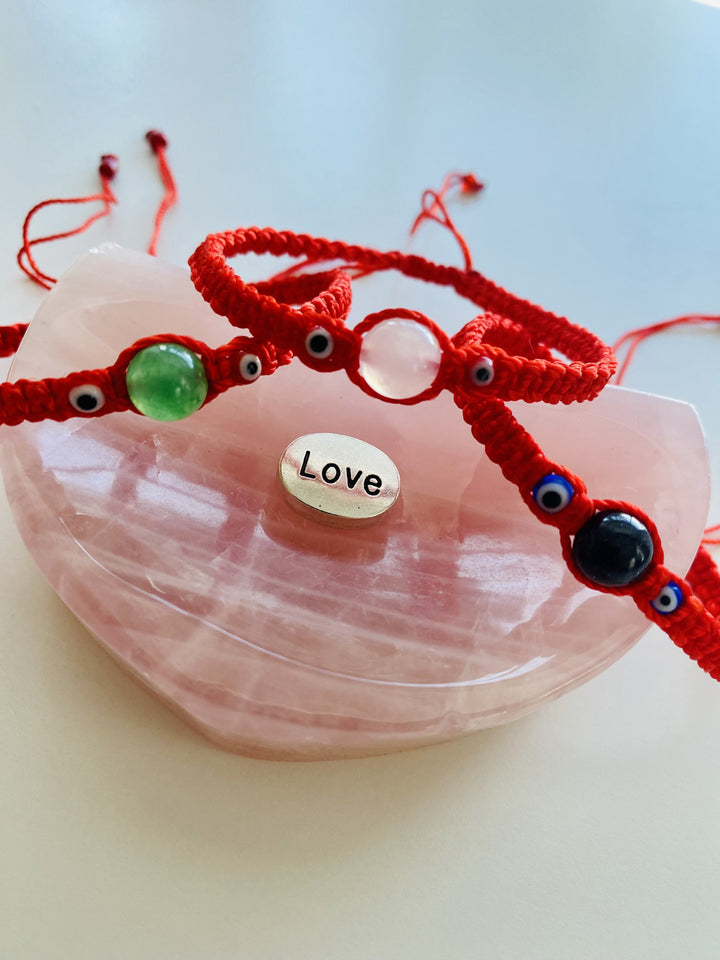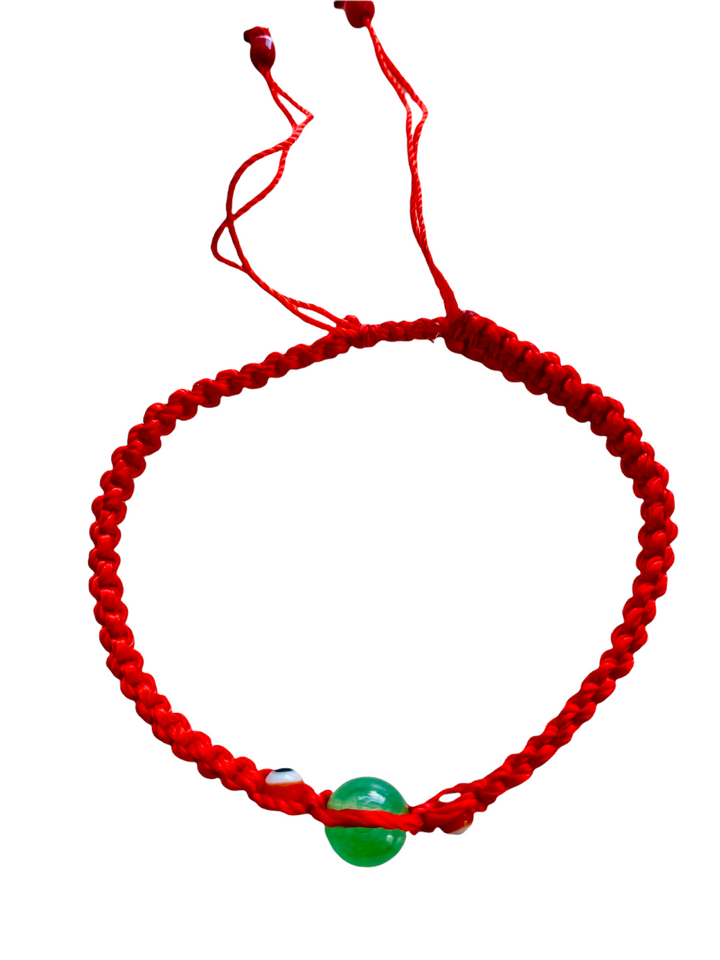 Green Jade Knotted Rope Hand made adjustable one size fits all Red Color Knotted Rope Has 2 Red color Evil Eyes Stone is an authentic natural Green Jade Stone Pulsera de Jade Verde...