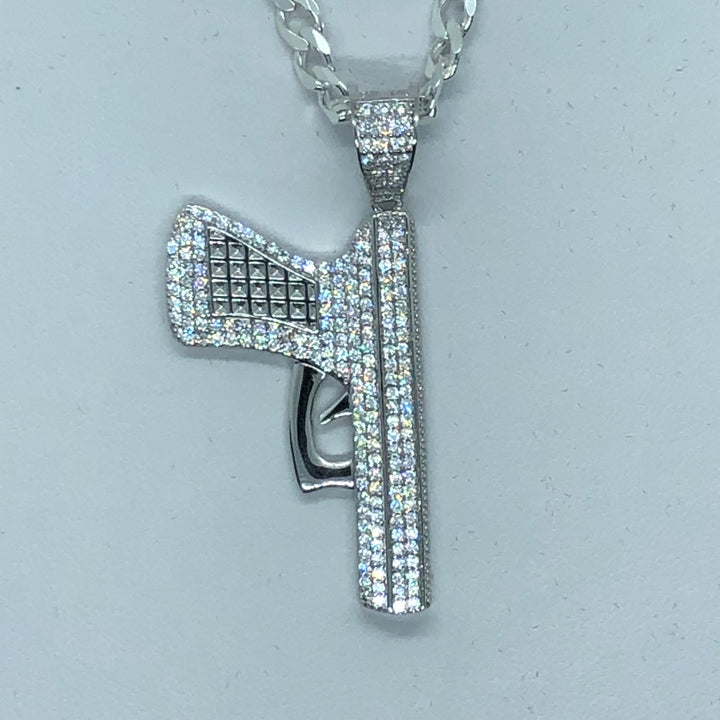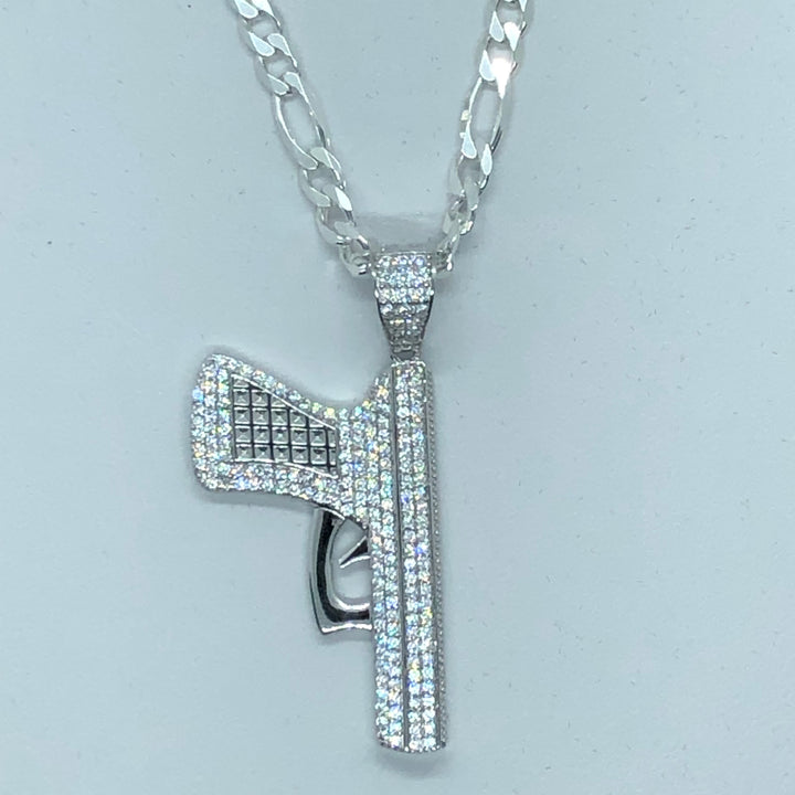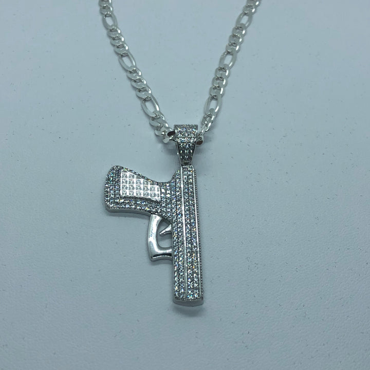 Gun with 24" Figaro Necklace (.925 PURE SILVER)